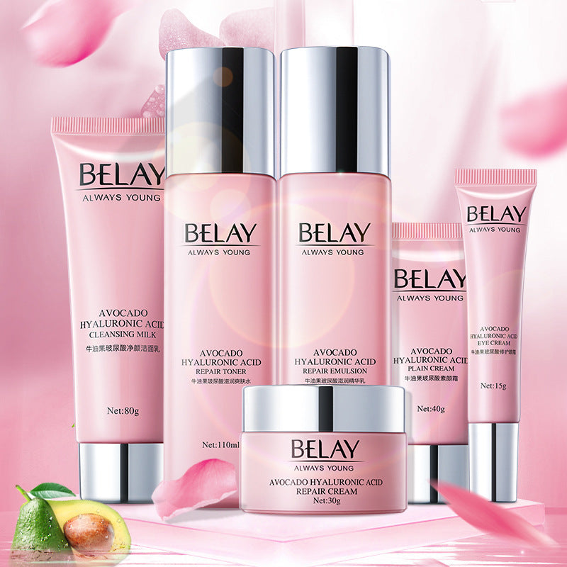Avocado Hyaluronic Acid Cleansing Milk (80g) Avocado Hyaluronic Acid Moisturizing Toner (110ml) Avocado Hyaluronic Acid Repair Eye Cream (15g) Avocado Hyaluronic Acid Moisturizing Essence Cream (110ml) Avocado Hyaluronic Acid Repair Face Cream (30g) Avocado Hyaluronic Acid Natural Cream (40g)